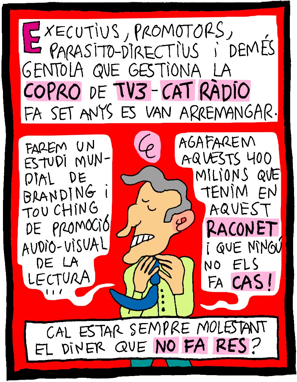 Executius, promotors, parasito directius i demés gentola que gestiona la copro de TV3-Cat Ràdio fa set anys es van arremangar.